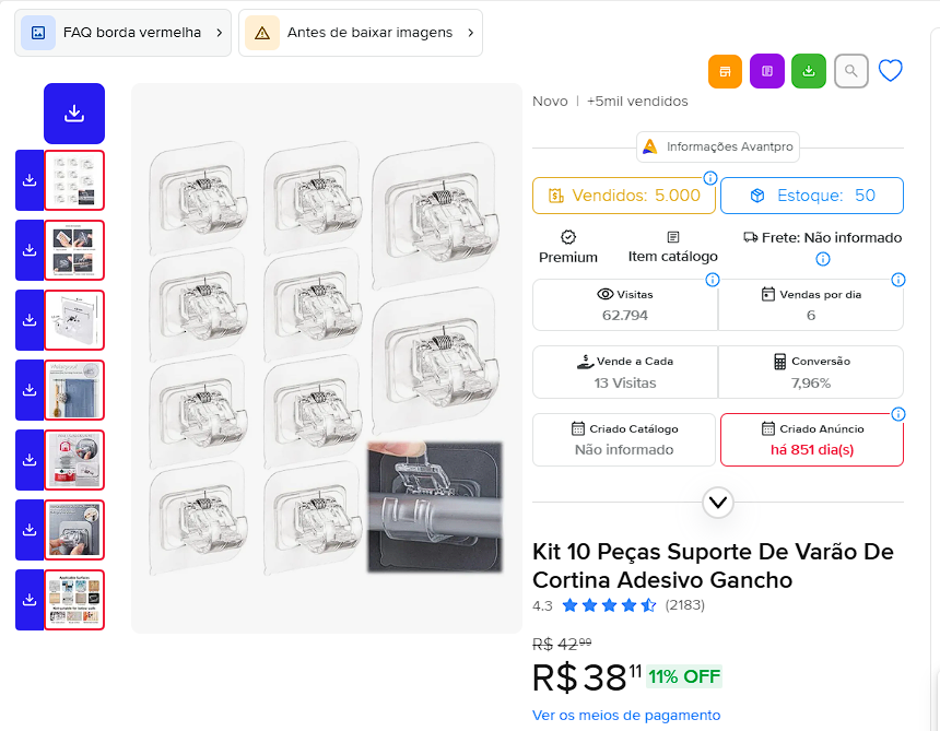 Se você tem medo de errar na primeira compra, este suporte é o seu porto seguro. Com um investimento ridículo (cerca de R$ 11,60 por kit de 10), você entra em um mercado com mais de 5 mil vendas validadas e margem de contribuição superior a 50%.
